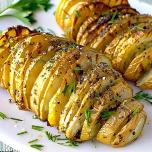 Aardappel voorbereiden: Was je aardappelen goed en dep ze droog. Bewaar de schil voor een extra vleugje smaak en knapperigheid. Snijd dunne plakjes in elke aardappel en zorg ervoor dat je niet dwars door de aardappel heen snijdt, zodat ze aan elkaar vastzitten aan de basis.