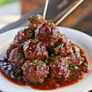 Meng in een slowcooker of grote pan op laag vuur de cranberrysaus, chilisaus, bruine suiker en citroensap. Voeg de gehaktballetjes toe en laat 1 uur sudderen voor het opdienen.