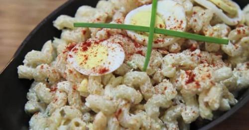 Heerlijk voor bij de barbecue: gevulde eieren-pastasalade